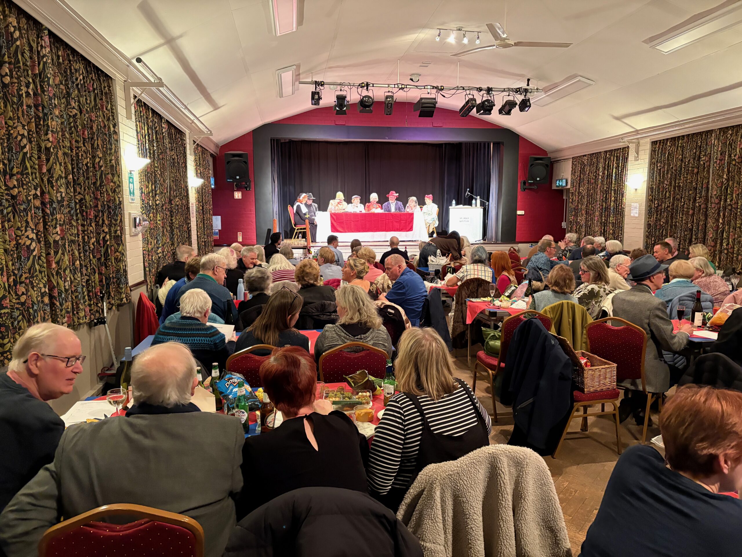 The Memorial Hall, Felpham was packed on Saturday night for a hilarious and highly entertaining evening. ‘Murder at the Old Rectory’ was a tale of deadly deeds, colourful characters and very bad poetry. The event combined a hunt for the murderer and a general knowledge quiz. Not forgetting a rich tapestry of sound effects. All proceeds went towards supporting the Community Felpham Post Office and Village Stores. Friends of Felpham wish to thank the magnificent cast, the Memorial Hall Team, especially Alex Marner, volunteers, donors and our splendid audience, many of whom dressed in 1950s costume. The entire event reflected the fantastic community spirit of Felpham Post Office and the Village Stores. Come visit and use our postal and banking services. Then shop our extensive and varied goods. You’ll be guaranteed a very warm welcome!!